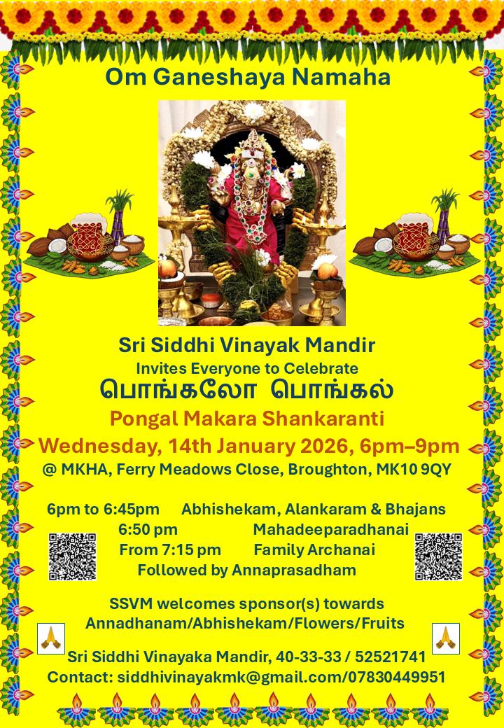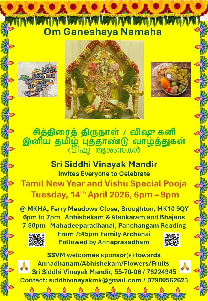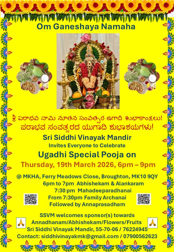 SSVM welcomes you all to our regular Sunday evening Ganesha pooja at MKHA community centre in Broughton, Milton Keynes.